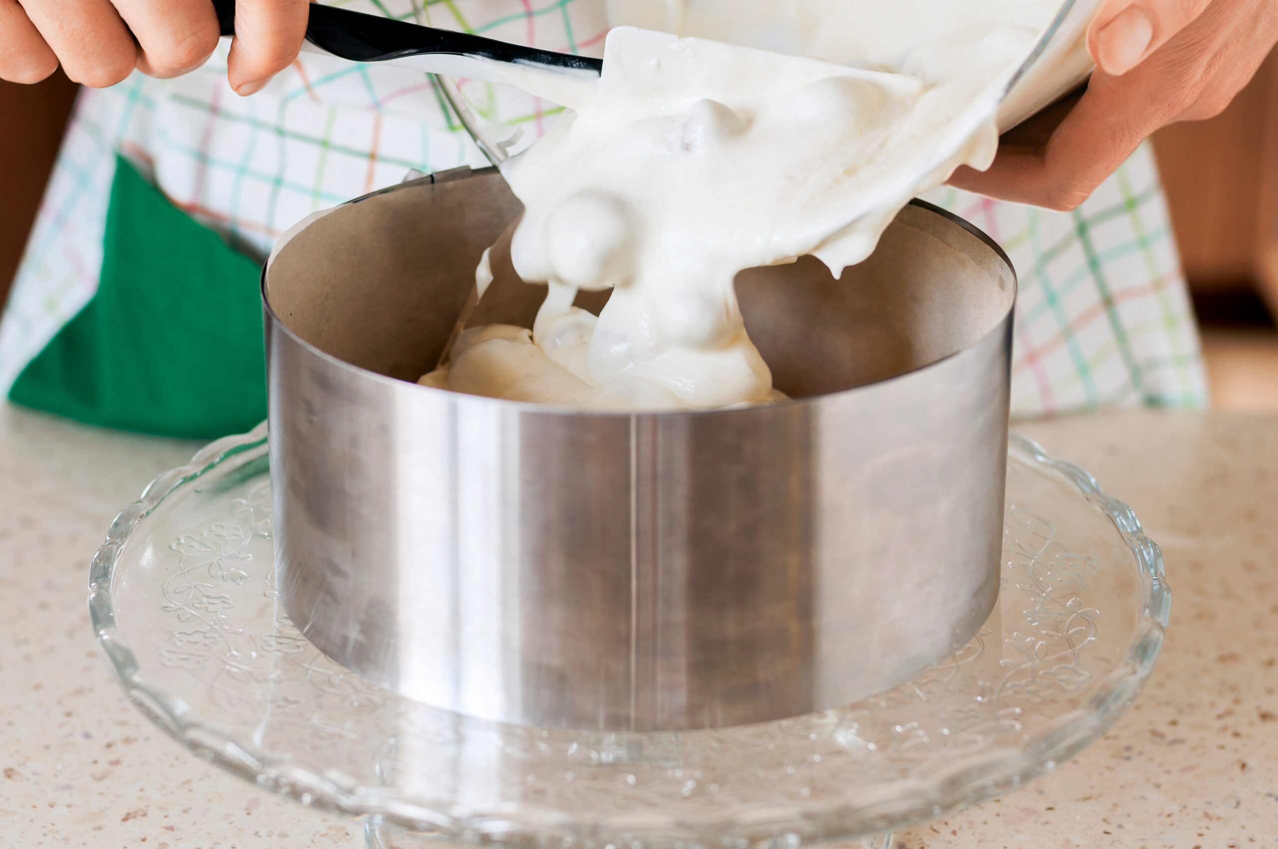Pisați sau măcinați biscuiții într-un blender, apoi amestecați cu untul topit. Puneți compoziția în tava cu pereți detașabili și apăsați bine cu o lingură sau fundul unui pahar.