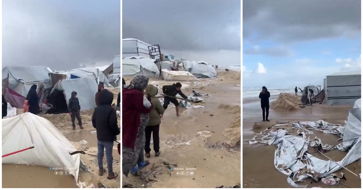 Multe dintre corturile în care oamenii se adăpostesc de frig şi ploaie au fost inundate, iar unele au fost sfâşiate de rafalele de vânt, a relatat luni agenţia de ştiri palestiniană WAFA. Corturile situate în apropierea plajei au fost distruse de valuri înalte, potrivit unui raport Al Jazeera.