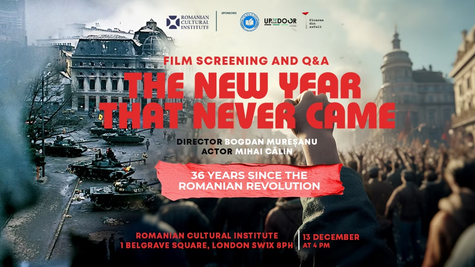 Institutul Cultural Român din Londra va găzdui, pe 13 decembrie 2025, un eveniment dedicat comemorării a 36 de ani de la Revoluția anticomunistă din 1989, marcând astfel unul dintre momentele definitorii ale istoriei moderne a României. Între orele 16:00 și 19:00, publicul este invitat la proiecția unuia dintre cele mai apreciate filme românești recente: „Revelionul care n-a mai venit” (2024), în regia lui Bogdan Mureșanu.