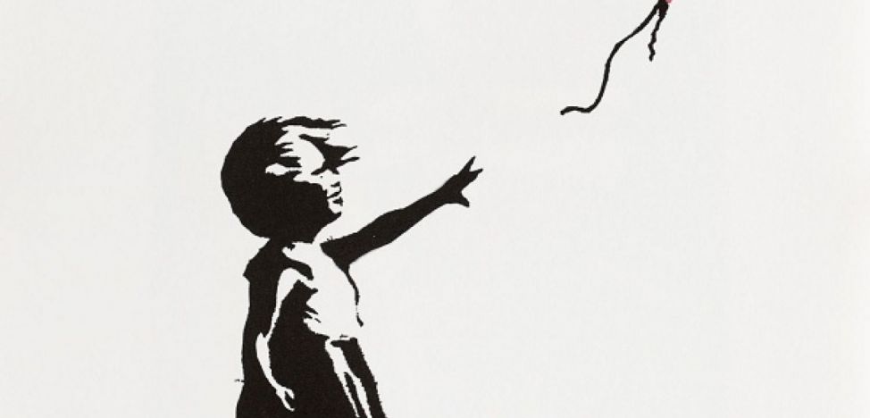 „Girl With Balloon”, care înfăţişează un copil mic care se întinde spre un balon roşu în formă de inimă, a apărut prima dată pe un perete din estul Londrei şi a fost reprodusă la nesfârşit, devenind una dintre cele mai cunoscute imagini ale lui Banksy.