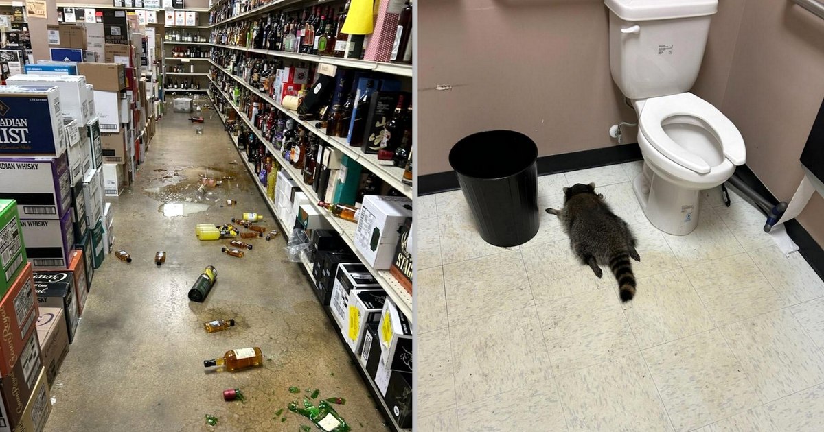 Angajații unui magazin de băuturi din Ashland, Virginia, au făcut o descoperire surprinzătoare la început de săptămână. Au găsit un raton prăbușit în baia magazinului ABC, după ce în prealabil a vandalizat rafturile cu băuturi, consumând mai multe tipuri de alcool. Imaginile cu animalul au devenit, în scurt timp, virale.