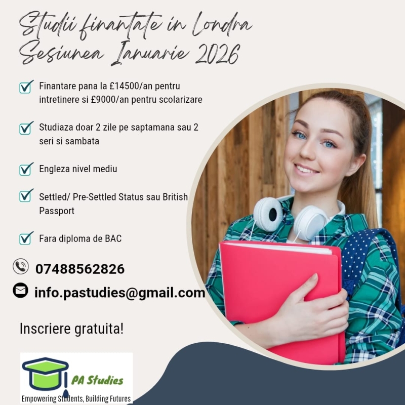 Studii finanțate în Londra — Start Ianuarie 2026!