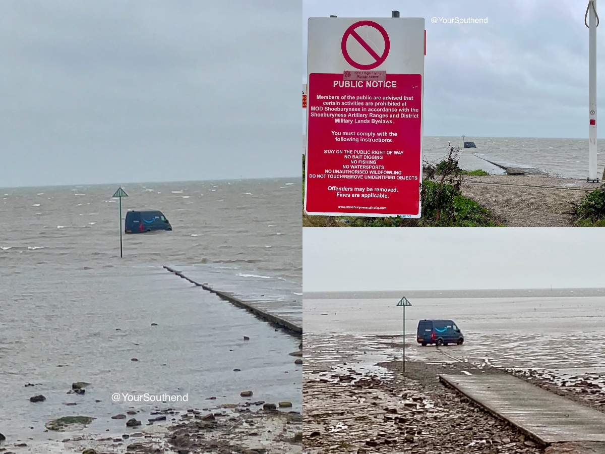 Garda de Coastă Regală (HM Coastguard) a fost alertată la ora 11:30, duminică, despre „un raport conform căruia un vehicul de livrare Amazon a intrat pe The Broomway”, la Great Wakering, în Essex.