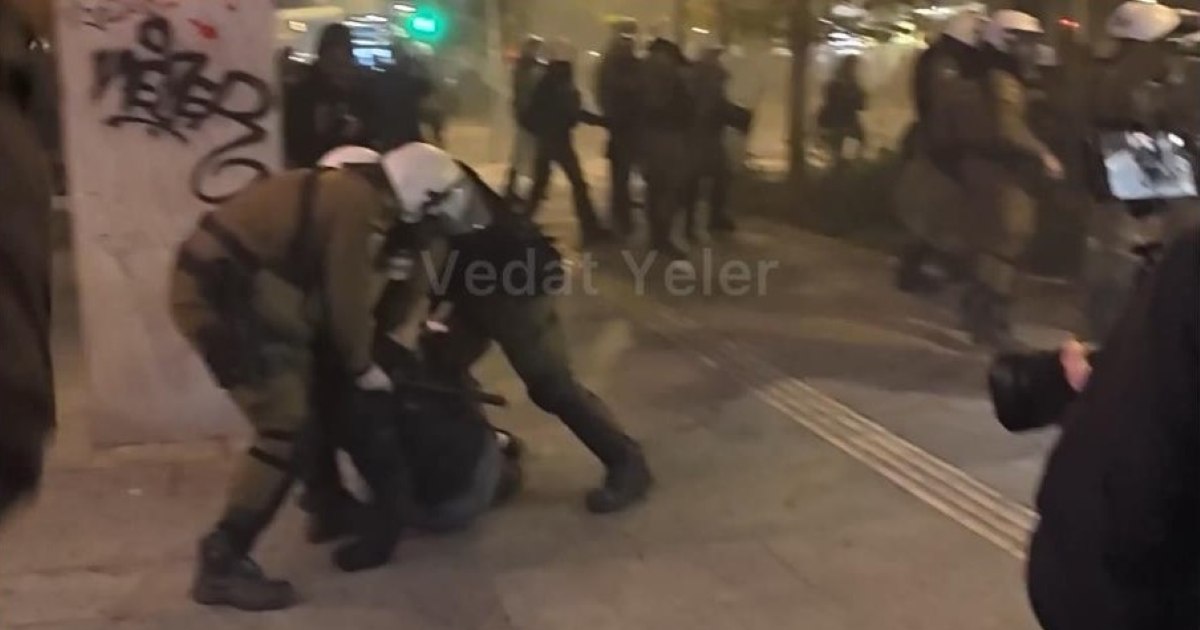Protestatar bătut de poliţie la Atena. FOTO: captură video X/vedatyeler